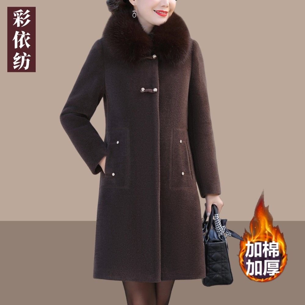 高端水貂绒外套中长款中年女加棉加厚宽松毛呢大衣