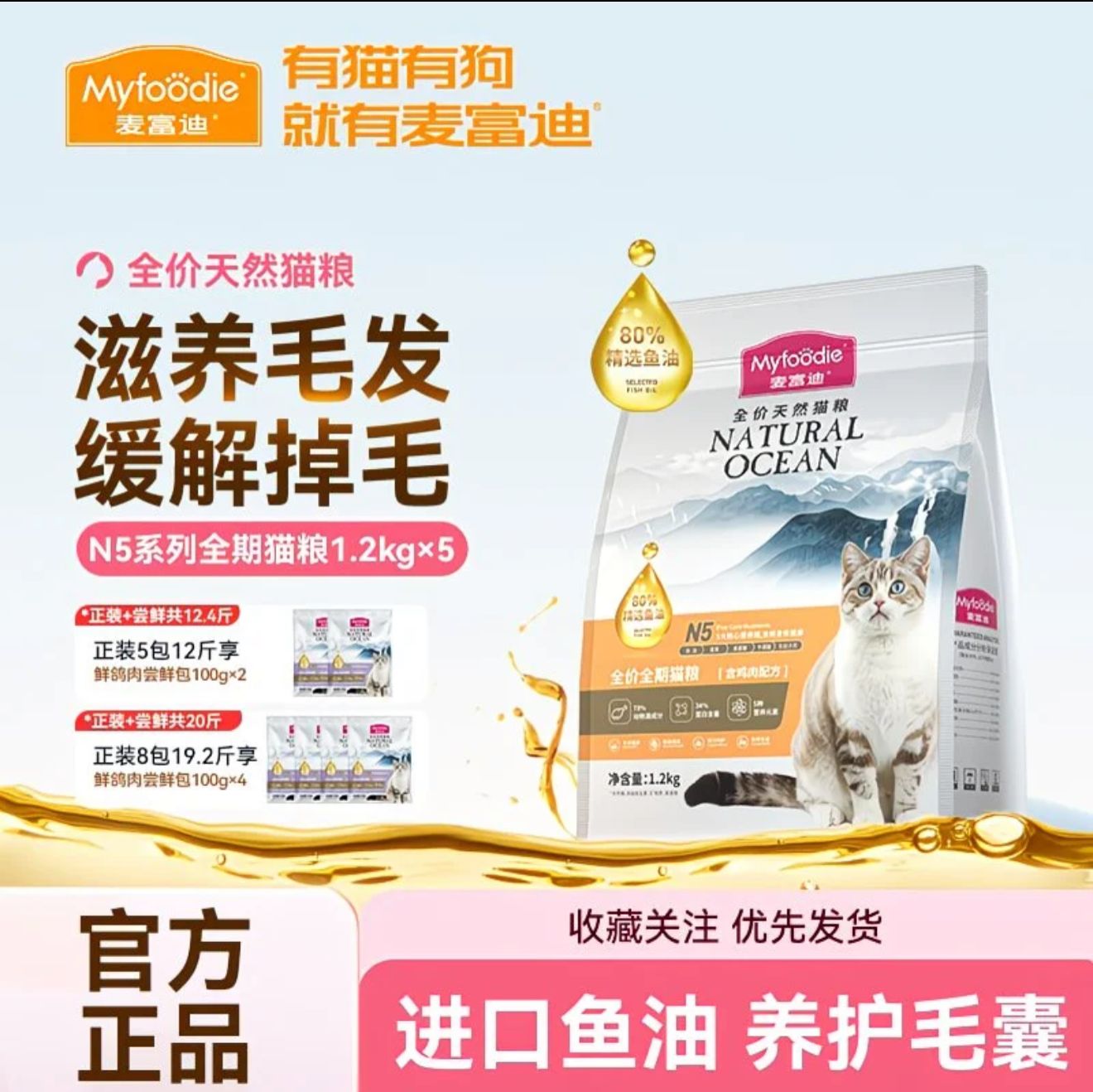 麦富迪N5三文鱼油猫粮天然营养成猫幼猫英美短蓝猫布偶通用6kg