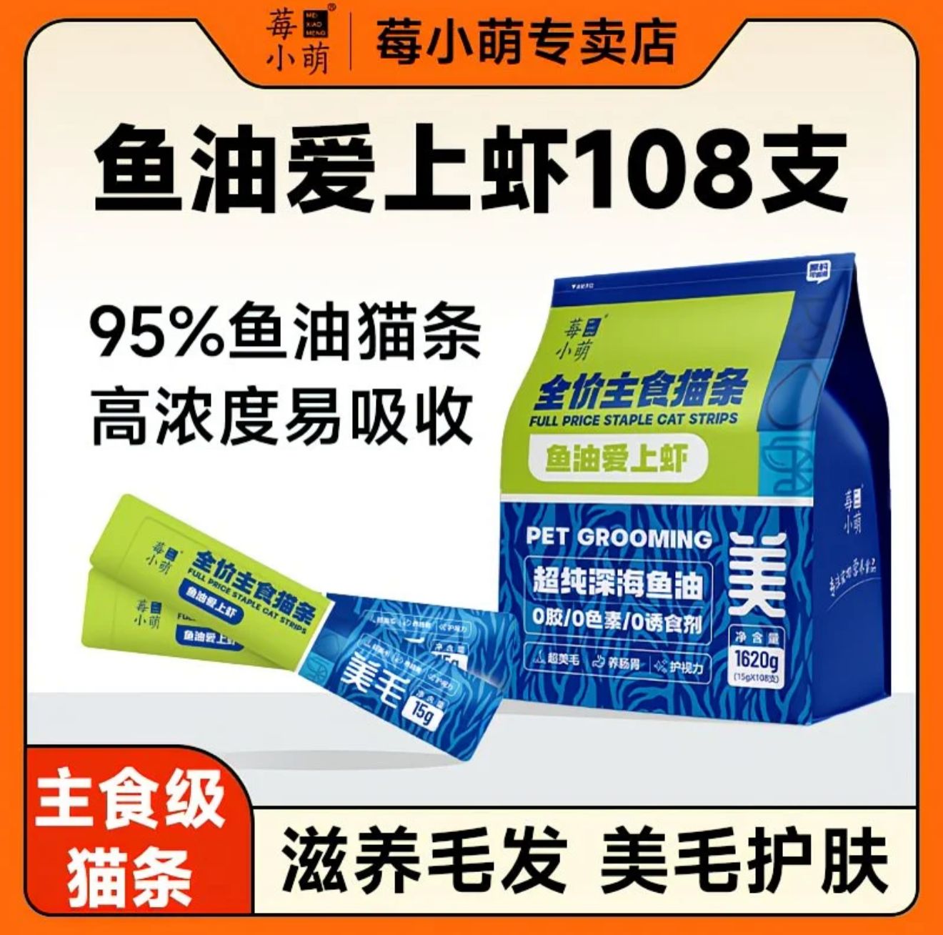 莓小萌鱼油主食猫条200支0胶0淀粉0诱食剂猫咪成幼猫咪营养